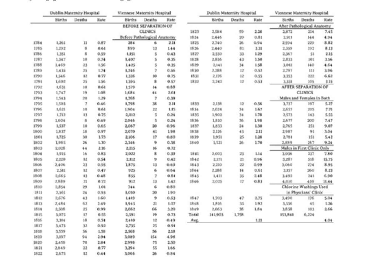This is the data from the table I showed you that Semmelweis created showing mortality rates for the hospital in Dublin compared to his in Vienna.
