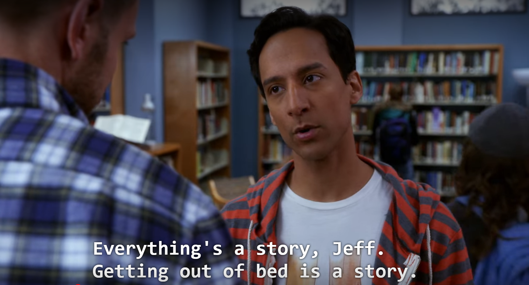 In any case, Community’s creator Dan Harmon really likes this idea about everything being a story.